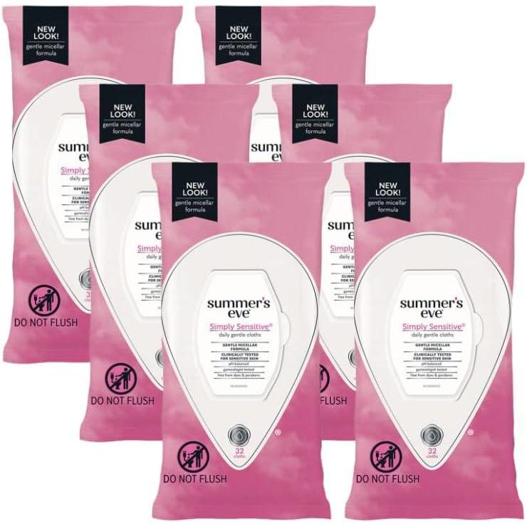 Find your fresh with Summer's Eve Feminine Cleansing Cloths. Summer's Eve Feminine Cleansing Cloths are hypoallergenic, and safe and gentle enough to use every day. Free from dyes and parabens, Summer's Eve Feminine Cleansing Cloths are created for your most intimate areas to gently cleanse away the bacteria that can cause odor. Made for sensitive skin, Summer's Eve Feminine Cleansing Cloths are balanced to a woman's natural pH range. Cleansing Cloths are perfect for freshness on-the-go. All Summer's Eve products – along with every unique scent – are gynecologist-tested to ensure they are safe, even for sensitive skin. Simply Sensitive scent is subtly floral-fragranced for a barely there impression. Summer's Eve Feminine Cleansing Cloths and Cleansing Washes are available in a variety of different fragrances and sizes.